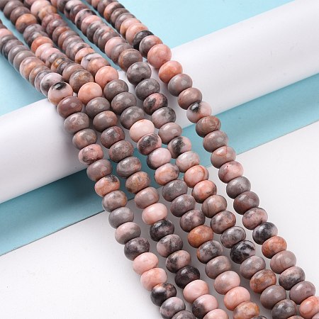 An 8" strand of 8 x 5mm Pink Zebra Jasper Rondelles, a darling gemstone inclusive of pinks, greys, and whites.