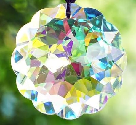 Under the sunlight these prisms show off their beauty with a rainbow of color as they catch the light.