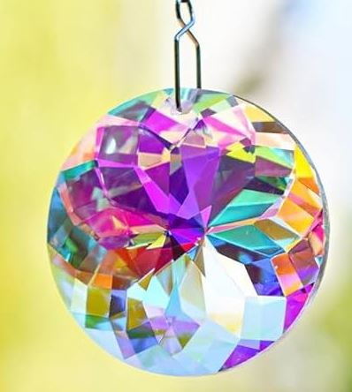 Under the sunlight these prisms show off their beauty with a rainbow of color as they catch the light.