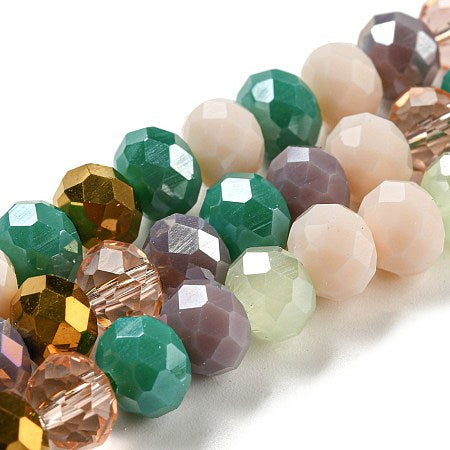 A gorgeous 12" strand of 8x6mm faceted glass rondelles in a fall inspired variety of color combination of transparent and opaque.