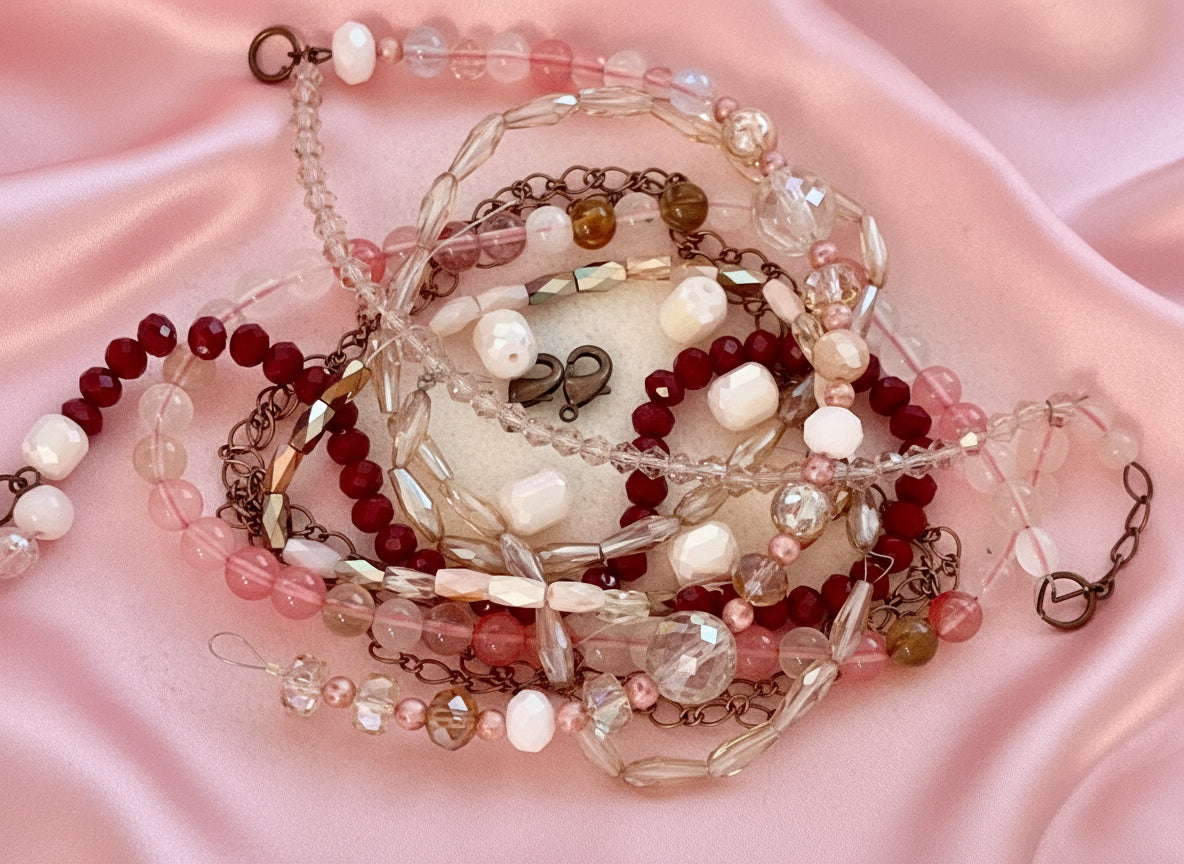 This sparkle bag is a outstanding collection of bead strands.. The Pink zebra gemstones blend with the the other strands. I love the sparkling crystals in a large variety of colors shapes and sizes.